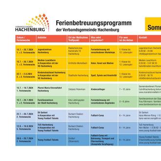 Das Jugendzentrum Hachenburg bietet in den ersten beiden Ferienwochen vom 15.07. - 19.07. und vom 22.07. - 26.07.2024 in der Realschule plus ein breit gefächertes Angebot. Die bis zu 80 Teilnehmenden pro Woche können sich nach den eigenen Interessen täglich neu in die unterschiedlichen Workshops eintragen. So entstehen kleine Gruppen von ca. 12 Kindern. Geboten werden u.a. Workshops in den Bereichen Sport, Kreatives, Spielerisches und vieles mehr. Ebenfalls großer Beliebtheit erfreute sich im letzten Jahr der Ferienspaß des „Medien Leuchtturms“ an der Grillhütte in Merkelbach.