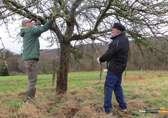 Das Thema beschäftigt uns in Limbach schon viele Jahre, ohne dass es nennenswerte Fortschritte gegeben hätte. Und so befinden sie sich in einem wirklich jämmerlichen Zustand, die gemeindeeigenen Obstbäume. In Summe dürften es wohl über 100 sein. Einige am „Pläthewesch“ Richtung Schiefergrube wurden nun aber ein Stück weit „erlöst“. Denn als ehemaligem, seiner alten Heimat aber immer noch eng verbundenen Lömbijer war „Sejwerts Johannes“ (Seibert) ihr erbärmlicher Zustand aufgefallen. Und so machte er, der über langjähriges profundes Wissen in Sachen Obstbaumschnitt verfügt, mir das Angebot, am „Pläthewesch“ ehrenamtlich aktiv zu werden. Voraussetzung war lediglich, dass ich ihm Helfer zur Seite stellen könne, denen er, das war ihm wichtig, den korrekten Obstbaumschnitt in Theorie und Praxis auch beibringen wolle. Helfer waren schnell gefunden und so ging es den Obstbäumen vergangene Woche an zwei Tagen mit Garten-, Ast- und Teleskopschere sowie Zug- und Motorsäge an den Kragen bzw. die Äste. Nach dem Schnitt konnte man dann endlich wieder das machen, was man bei einem gut gepflegten Obstbaum machen können muss: einen Hut durch seine Äste schmeißen. Das Schnittgut wurde übrigens direkt vor Ort zu Totholzhecken aufgeschichtet und entfaltet so noch einen wertvollen ökologischen Nutzen. Ein großes Dankeschön an Johannes und Helfer für diese dringend erforderliche Arbeit. Weitere Einsätze sind geplant. Bei Interesse nehme ich auch Dich gerne in die WhatsApp-Gruppe „Obstbaumschnitt“ auf. Gib mir einfach kurz Bescheid (0151 220 74 323 oder ortsbuergernmeister@limbach-ww.de).