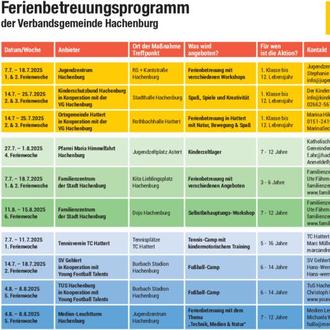 Insgesamt stehen den Familien in der Verbandsgemeinde Hachenburg in den Sommerferien mit diesem breit aufgestellten „Bündnis Ferienbetreuung“ 460 Plätze zur Verfügung - die Vorbereitungen laufen in der Verwaltung, im Jugendzentrum und bei allen weiteren Partnern schon jetzt auf Hochtouren.