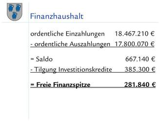 Im Anschluss an die Präsentation zum Haushaltsplan 2024 durch Stadtbürgermeister Michael Thiesen beschloss der Stadtrat mit einer Gegenstimme die Haushaltssatzung und den Haushaltsplan für das Jahr 2024. Der Ergebnishaushalt ist ausgeglichen und schließt, bei Erträgen in Höhe von 20.400.370 Euro und Aufwendungen von 19.119.690 €, mit einem Jahresüberschuss in Höhe von 1.280.680 € ab. Im Finanzhaushalt ist der Saldo der ordentlichen und außerordentlichen Ein- und Auszahlungen mit einem Betrag von 667.140 € ebenfalls positiv. Die planmäßige Tilgung von Investitionskrediten kann daher aus eigenen Mitteln erfolgen. Vielmehr kann eine freie Finanzspitze in Höhe von 281.840 Euro ausgewiesen werden, die zur teilweisen Finanzierung der Investitionen eingesetzt wird. Die verbleibende Differenz soll mit der Aufnahme eines Investitionskredites in Höhe von 4.005.140 Euro geleistet werden. Die Stadt Höhr-Grenzhausen ist erfreulicherweise weiterhin nicht auf einen Kassenkredit angewiesen und kann Ihre Verpflichtungen aus dem laufenden Haushalt bewerkstelligen.