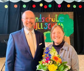 In einer feierlichen Stunde wurde Yvonne Baurenschmidt vergangenen Freitag offiziell als neue Schulleiterin der Melchiades-Best-Schule geehrt. Kolleginnen, Kollegen, Schülerinnen und Schüler stellten ein abwechslungsreiches Programm zusammen: Bläserklasse, Sketche, Tänze, Gesang, Getrommel und vieles mehr. Yvonne Baurenschmidt ist seit 2020 an der Grundschule tätig und übernahm zu Beginn dieses Schuljahres die Stelle ihres Vorgängers Bernd Görlitz. Unterstützt wurde sie an ihrem Ehrentag von der Familie sowie ehemaligen und heutigen Arbeitskollegen. Für die Ortsgemeinde Hillscheid gratulierte unser Bürgermeister Dr. Andreas Rath – wir wünschen Frau Baurenschmidt alles erdenklich Gute für die Zukunft!