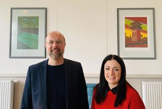 Ortsbürgermeister Dr. Andreas Rath und die Vorsitzende des Vereins Kulturcafe „Ahl Schul“ e.V. Jaqueline Merfels