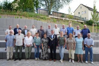 Foto vordere Reihe von links nach rechts: Beigeordneter Uwe Christian Finke, Erster Beigeordneter Michael Stahl, Dagmar Behncke-Heuser, Nicole Thoss, Lena Letschert, Stadtbürgermeister Wolfgang Letschert, Kinga Hofmann, Astrid Thewalt, Ute Eberl, Beigeordneter Horst Eberl. Hintere Reihe v. l. n. r.: Ingo Hoffmann, Wolfgang Weik, Michael Specht, Bastian Dillenburg, Andreas Erdmann, Winfried Mathy, Helmut Wieler, Guido Kröff, Christoph Gerling, Reinhard Heuser, Bernd-Josef Hoffmann. Nicht auf dem Foto sind die Stadtratsmitglieder Elisabeth Dietz-Bläsner, Sigrid Keller, Stephanie Oster, Eva Pucher-Palmer, Rainer Schneider.