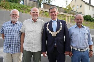 Als nächster Tagesordnungspunkt folgten die Wahlen der Beigeordneten. In mehrheitlicher Abstimmung wurde Michael Stahl (FWG, Foto 2. v. links) zum Ersten Beigeordneten der Stadt gewählt. Als weitere Beigeordnete wurden ebenfalls mit mehrheitlichem Ergebnis Horst Eberl (CDU, Foto rechts) und Uwe-Christian Finke (SPD) gewählt.
