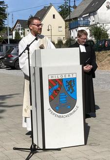 Der Höhepunkt der Zeremonie war dann die offizielle Einweihung des Bommertplatzes durch die beiden Vertreter unserer Kirchen, Herrn Pfarrer Carsten Schmitt von der evangelischen Kirche und Diakon Markus Seibel von der katholischen Kirche. In einer sehr würdevollen, aber auch kurzweiligen Art und Weise erfolgte die Einsegnung von den beiden Kirchvertretern zur Freude der Besucher.