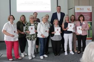 Alexander Schweitzer inmitten von Lesebotschafterinnen, die in Mainz aus seinen Händen die Fortbildungsurkunde erhalten haben. Frau Gerlinde Ganzer 4.v.l.