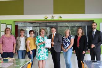 Ausgezeichnetes Schulessen: Bereits 2018 erhielt die Mensa im Schulzentrum in Nentershausen die „Drei‐Sterne‐Auszeichnung“ vom Dienstleistungszentrum Ländlicher Raum (DLR). Jetzt wurden die drei Sterne erstmals verteidigt. Dazu reichte es nicht, den hohen Standard zu halten, es mussten Verbesserungen eingeführt und nachgewiesen werden. Das ist den beiden Schulen, der Freiherrvom‐ Stein‐Realschule plus und der Pfarrer‐Toni‐Sode‐Grundschule, in Zusammenarbeit mit dem Essensanbieter Sander Catering und den Fachleuten der Schulverwaltung mit Bravour gelungen.