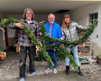 Auslieferung der Grüngirlanden. Jetzt kann es auch in Horressen losgehen. V.l.n.r.: Thomas Becker, Karlheinz Philipps, Karin Maas (Foto: Bürgerverein Montabaur)