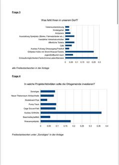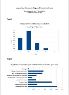 Die Ortsgemeinde hat die Bürgerbefragung nun ausgewertet und die Ergebnisse veröffentlicht (s. Fotos). Dabei wurde deutlich, welche Themen die Bürgerinnen und Bürger besonders bewegen. Der Ortsgemeinderat wird sich intensiv mit den Rückmeldungen auseinandersetzen und die Anliegen in seine Beratungen einfließen lassen.