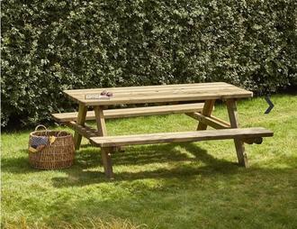 Eine zusätzliche Picknickbank ist bereits für den Spielplatz (Trampolin) bestellt!