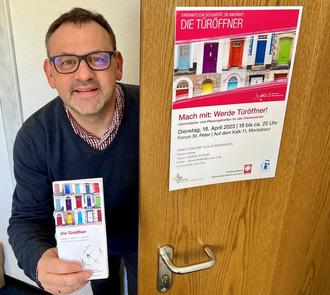 Foto mit Symbolcharakter: Rainer Lehmler vom Caritasverband Westerwald-Rhein Lahn sucht in Kooperation mit der katholischen Pfarrei Montabaur-Stelzenbachgemeinden und der Gemeindeschwester Plus der VG Montabaur nach sogenannten Türöffnern für das gleichnamige Ehrenamtsprojekt. Foto: Caritasverband Westerwald-Rhein-Lahn e.V./Holger Pöritzsch