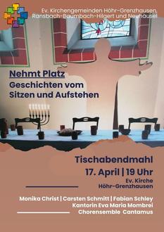 | 19 Uhr | Tischabendmahl - Nehmt Platz – Geschichten vom Sitzen und Aufstehen |