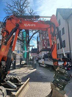 Der Kleine Markt in Montabaur wird neu gepflastert. Die Arbeiten beginnen am Montag, dem 14. April 2025, und werden etwa acht Wochen dauern. Betroffen ist der Bereich zwischen der Kreuzung Steinweg / Bahnhofstraße / Vorderer Rebstock bis zum Großen Markt. Der Abschnitt wird für Fahrzeuge komplett gesperrt, Fußgänger können jedoch passieren. Der Lieferverkehr für die Kirchstraße und den Großen Markt kann von oben her über die Kirchstraße in die Fußgängerzone ein – und ausfahren; die Poller sind wie immer vormittags bis 11.00 Uhr geöffnet. Bahnhofstraße, Steinweg und Vorderer Rebstock können wie bislang befahren werden.