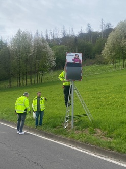 Mit tatkräftiger Unterstützung des Bauhofs der Stadt Montabaur wurde das Lärm-Display am Ortsausgang von Bladernheim Richtung Ettersdorf installiert, es wird dann für einige Wochen dort verbleiben und dann an einen anderen Standort innerhalb des Gelbachtals umziehen.