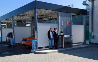 Zurzeit können am Waschpark PKW und Wohnmobile gereinigt werden. In den nächsten Wochen kommt noch eine Waschanlage für LKW und Busse sowie eine SB-Tankstelle hinzu.