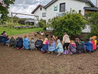 Nach dieser Aufregung hatten sich alle eine gemütliche Vesperpause verdient. Bei einem anschließenden Rundgang wurde der Bulle auf der Weide gefüttert, Wissenswertes über den Beitrag zum Klimaschutz gelernt, landwirtschaftliche Maschinen und Fahrzeuge bestaunt bis schlussendlich auch die Hühner mit der Hand gefüttert werden durften.