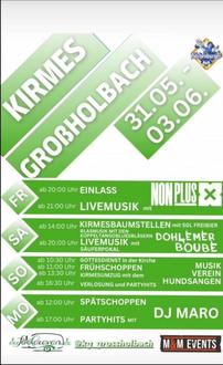 vom 31. Mai 2024 bis 03. Juni 2024 feiert Großholbach seine traditionelle Zeltkirmes auf dem Bolzplatz am Friedhofsweg.