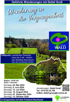 Detlef Groß, Sohn des früheren Landshuber Forstbeamten Hans Groß und selbst ehemaliger Bewohner des Hauses, hat in jahrelanger Arbeit Dokumente und Fotos zusammengeführt, welche die sehr umfangreiche und wechselvolle Geschichte der Landshube und der gleichnamigen Weiher darlegen. Neben seinen Vorträgen und der ausführlichen Internetseite (www.landshube.com) führt Detlef Groß in Zusammenarbeit mit dem Forstamt Neuhäusel auch in diesem Jahr wieder Wanderungen durch. Während der ca. vierstündigen Führung erfahren Sie viele interessante Fakten aus der langen Geschichte der Landshube und ihrer näheren Umgebung.