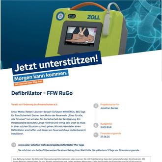 Wir brauchen Eure Unterstützung! Die Freiwillige Feuerwehr Ruppach-Goldhausen plant die Anschaffung eines Defibrillators, um die Sicherheit um das Feuerwehrhaus herum zu erhöhen. Der Defibrillator kann im Ernstfall lebensrettend und entscheidend sein!