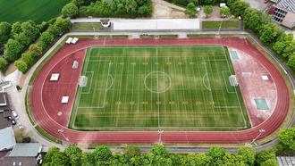 Das modernisierte Stadion in Montabaur verfügt nun über einen Kunstrasen, neue Drainagen, eine zeitgemäße Beregnungsanalage und fest installierte Markierungen für Fußball und American Football. (Bild: VG Montabaur / Ralf Kohlhaas)