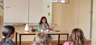 Fasziniert verfolgten die Schülerinnen und Schüler das aufregende Abenteuer eines Geschwisterpaares. Die Spannung knisterte und die Zuhörenden wurden aktiv einbezogen, denn es ging gemeinsam auf Spurensuche. Sie rätselten, wie der vermisste Bruder befreit werden könnte und auch eigene Ideen wurden entworfen. In ihrer kurzweiligen Erzählung führte Frau Flacke schließlich die Geschichte zu einem guten Ende, nicht ohne die Nerven nochmals mit einer unerwarteten Wendung zu kitzeln. „Es war richtig toll und gar nicht langweilig!“, fasste ein Kind den literarischen Ausflug begeistert zusammen.