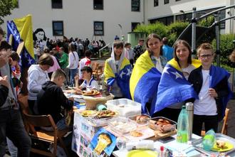 Nach der intensiven Auseinandersetzung mit den Inhalten des Anne Frank Tages ging es anschließend auf den Schulhof. Viele engagierte Schülerinnen und Schüler aus allen Jahrgangsstufen hatten zusammen mit dem SV-Team unter der Leitung von Diana Albert und Jürgen Korth für ihre Mitschüler ein Fest der Kulturen vorbereitet. An unzähligen Ständen auf dem Schulhof stellen Jugendliche die unterschiedlichsten Länder und ihre Kulturen vor und boten Informationen, Mitmachaktionen, Spiele sowie leckere Kostproben aus den ländertypischen Küchen.