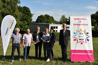 Der Erlös der Bewirtung wird für einen guten Zweck zur Verfügung gestellt. Diesmal durften sich eine Verein und eine Stiftung über eine kleine Zuwendung freuen.Für den Verein „DU bist WIR e.V.“ freute sich dessen 2. Vorsitzende Michaela Schmidt über 750 € (zweite von rechts). Für den zweiten Spendenempfänger, die neue Stiftung des gastgebenden Familienferiendorfs Hübingen, die ebenfalls 750 € erhalten hat, bedankte sich deren Leiter Michael Nagel (dritter von links) bei den Initiatoren.
