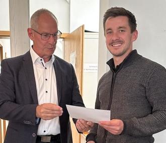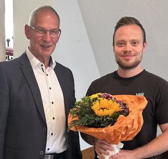 Ortsbürgermeister Weidenfeller überreichte Nico Schlosser einen Blumenstrauß, die Ernennungsurkunde, vereidigte ihn und führte ihn damit offiziell in das neue Amt ein.