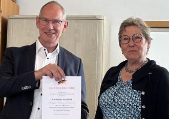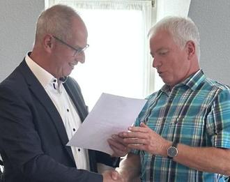 Aus der Hand der 1. Ortsbeigeordneten Yvonne Schlosser erhielt Ortsbürgermeister Hans Ulrich Weidenfeller ebenfalls eine Ehrenurkunde für seine zwischenzeitlich 40-jährige ehrenamtliche Tätigkeit in der Ortsgemeinde Gackenbach. Er ist seit 1984 Mitglied des Gackenbacher Ortsgemeinderates, von 1986 bis zum Beginn des Jahres 1989 begleitete er das Amt des 1. Ortsbeigeordneten und wurde am 13. Januar 1989 erstmals zum Ortsbürgermeister gewählt. Dieses Amt übt er inzwischen seit 35 Jahren aus, mit der Neuwahl am 9. Juni 2024 beginnt nunmehr seine 8. Amtsperiode.