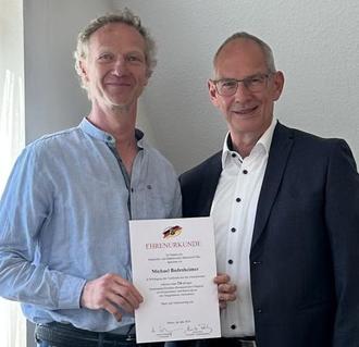 Ortsbürgermeister Hans Ulrich Weidenfeller überreichte dem bisherigen Beigeordneten Michael Bodesheimer einen Blumenstrauß und dankte ihm für die konstruktive Unterstützung und Zusammenarbeit.