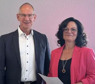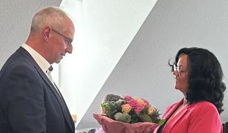 Ortsbürgermeister Weidenfeller ernannte seine Stellvertreterin und überreichte die Ernennungsurkunde und einen Blumenstrauß.