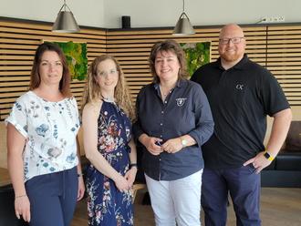 Sie freuen sich auf viele gemeinsame Veranstaltungen: (v.l.) Die Koordinatorin für die Stadthalle Verena Schmitt, die neue Pächterin Stefanie Hefner, Stadtbürgermeisterin Melanie Leicher und Citymanager Oliver Krämer. (Bild: Stadt Montabaur, Viola Marschall)