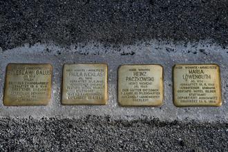 Am Ortsrand von Bronn wurden die Stolpersteine, kleine bronzene Erinnerungstafeln, für Boleslaw Galus, Paula Nicklas, Heinz Paczkowski und Maria Löwenguth in den Boden eingelassen. (Bild: Michael Weber-Schwarz)