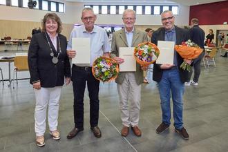 „Ihr seid mir ans Herz gewachsen“. So verabschiedete Stadtbürgermeisterin Melanie Leicher die ehemaligen Stadtbeigeordneten (v.l.) Peter Piroth, Karl-Josef Hübinger und Gerd Frink (Bild: Stadt Montabaur / Olaf Nitz)