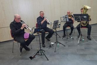 Die feierlichen Momente des Abends unterstrichen die Musiker (v.l.) Marco Leicher, Volker Klein, Thomas Sayn, Dr. Werner Wengenroth gekonnt mit ihrer Liedauswahl (Bild: Stadt Montabaur / Olaf Nitz)