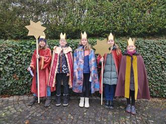 Am 06. Januar 2024 waren Hannah B., Emma B., Malte T., Maida T. und Lasse T. begleitet von zwei Jugendlichen als Sternsingerinnen und Sternsinger in Bladernheim unterwegs. Sie zogen von Haus zu Haus und besuchten die Familien um den Segen Gottes "Christus mansionem benedicat - Christus segne dieses Haus" zu bringen.