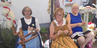 Die „Daubacher Spinnfrauen“ präsentierten sich in ihren selbstgenähten Trachten vor dem Heimathaus und zeigten live, wie abwechslungsreich und erfüllend ihr Handwerk ist. Kein Wunder, dass der ein oder andere Besucher gleich eines der schönen Produkte kaufte.