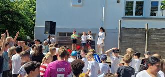 Die besten drei wurden vor der Schulgemeinschaft von den schulinternen Organisatoren des Wettbewerbs Frau Birth und Frau Noll ausgezeichnet und mit Preisen geehrt. Diesen gratulieren wir herzlich! Für alle Teilnehmer gab es am Ende eine Urkunde und ein kleines Knobelspiel. Zusätzlich konnte auch der Preis für den weitesten „Känguru-Sprung“, für den die größte Anzahl aufeinanderfolgender richtiger Antworten maßgeblich war, in Form eines T-Shirts ergattert werden.