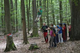 „Waldferien sind top“ - so die einhellige Meinung der Mädchen und Jungen, die an der Wald-Ferienfreizeit im Montabaurer Stadtwald teilgenommen haben. Mit dabei die Waldpädagogin Victoria Mayer (Leiterin und Initiatorin), Marcel Wilhelmi und einige Helfer.