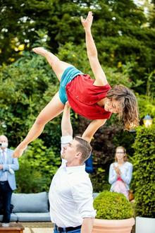 Der Diabolokunst und der Jonglage hat sich Matze Rapido verschrieben. Der sympathische Weltbürger zeigt bescheiden mit höchster Souveränität Tricks von Weltklasse. Klar, dass er damit gern gesehener Gast auf vielen Festivals im In- und Ausland ist. Mit einem humorvollen Augenzwinkern präsentiert Aleesha Aaragones ihre einzigartige Luftartistik. In der Kuppel des Hübinger Zirkuszeltes zeigt sie ihre Kunst an den Straploops, in Schlaufen aufgehängte Gurtbänder. Ein extrem schwieriger Tanz in der Luft gegen die Schwerkraft.