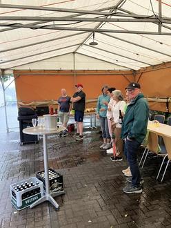 Aber Petrus hat leider nicht mitgespielt, so dass das Grillen aufgrund der Witterung kurzfristig an und ins Gemeindehaus verlegt werden musste. Das tat der guten Stimmung aber keinen Abbruch und mit leckerem Grillgut, schmackhaften Salaten und ausreichend gekühlten Getränken wurde bis in die Abendstunden die erfolgreiche Dorfverschönerungsaktion angemessen gefeiert.