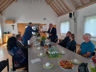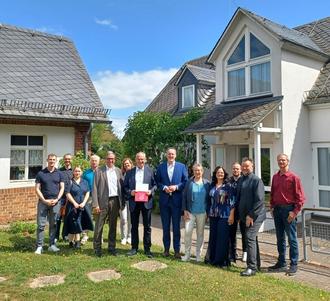 Mitglieder des Ortsgemeinderates, Beigeordnete, in das Projekt und in die Förderung eingebundene Mitarbeiterinnen und Mitarbeiter der Verbandsgemeinde- und der Kreisverwaltung zeigten sich hoch erfreut über die Förderzusage, Ortsbürgermeister Hans Ulrich Weidenfeller nahm herzlich dankend den Förderbescheid aus den Händen von Herrn Minister Ebling entgegen.