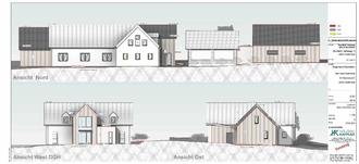 In der neuen Variante soll das Obergeschoss (OG) des Pfarrheims durch einen außen angebauten Aufzug bzw. eine Liftanlage barrierefrei erschlossen und das Dach energetisch ertüchtigt werden. Der Gruppenraum im OG wird zum Sitzungssaal, das ehemalige Pfarrbüro zum Büro des Ortsbürgermeisters mit kleinem Archiv/Lagerraum.