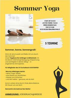 Ab dem 14.8. hat der Sportverein Olympia für seine Mitglieder kostenfrei Yoga im Angebot! Zunächst findet unter der Leitung von Iris Münch-Wolf, Elgendorf, ein Schnupperkurs mit fünf Einheiten a' einer Stunde statt. Getroffen wird sich wöchentlich donnerstags um 18 Uhr in der Waldbachhalle. Ein besseres Körpergefühl, das ist das Ziel! Also einfach dabei sein und entsprechend seinem Stand mitgemacht! Wegen dem kapazitätsmäßig begrenzten Angebot bitte ich euch SV-Mitglieder darum, sich bei mir entweder über Email oder telefonisch anzumelden. Handy-Nr.: 015757143663. Joachim Gerlach
