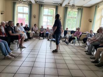 Ca. 40 Seniorinnen, darunter auch vereinzelte Senioren (inkl. Ortsvorsteher) folgten der Einladung des Teams der katholischen Kirchengemeinde Horressen für Seniorenarbeit, am 24.07. ins Pfarrheim. Hiermit möchte ich zunächst dem Team für ihr Engagement in der Seniorenarbeit recht herzlich danken. Ebenfalls vielen Dank für den freundlichen Empfang! Hier bekommen die älteren Einwohner das ganze Jahr über die Möglichkeit geboten, einmal im Monat einen Nachmittag in Geselligkeit nicht nur bei Kaffee und Kuchen zu verbringen. Es wurden Informationen ausgetauscht und wie z. B. am letzten Mittwoch, auch Bewegung angeboten. Unter Anleitung von Fr. Rita Stienen und Schwester Barbara Spiegelhoff (Gemeindeschwester plus der Verbandsgemeinde) durften im Sitzen zu Walzermusik Bewegungsabläufe trainiert werden, die im Alltag zur Erhaltung der Beweglichkeit auch zu Hause trainiert werden können. Bewegungsabläufe der einzelnen Finger zum Training der Fingerkraft standen ebenfalls auf dem Programm. In diesem Zusammenhang möchte ich mich auch bei unserer Gemeindeschwester Barbara für ihr Mitwirken und unserem ersten gemeinsamen Gespräch bedanken. Ein Gesprächsthema im Seniorenkreis war auch der letzte gemeinsame Ausflug zum Tier-Erlebnispark Bell. Jährlich werden mehrere Ausflugsfahrten angeboten und im Wochenblatt bekannt gegeben. In dieser gemütlichen und entspannten Atmosphäre kam natürlich auch das ein oder andere Gespräch zustande. Hier ging es z.B. um die Gestaltung innerhalb des Ortes oder auch um eine Möglichkeit zu suchen wie man als gehbehinderter Mensch, z.B. einen liebgewonnenen Menschen in einem anderen Ort besuchen kann. Wir können in unserer Gemeinde froh sein, ein solch engagiertes Team in der Seniorenarbeit zu haben und wünsche mir, dass viele Mitbürgerinnen und Mitbürger an den zukünftigen angebotenen Veranstaltungen und damit aktiv am gesellschaftlichen Leben in unserem Ort teilnehmen. Hier wird Gemeinsamkeit gepflegt und vielleicht können wir Ideen austauschen und etwas in Bewegung setzen um das Leben in diesem Ort noch lebenswerter zu gestalten. Gerne werde ich versuchen, auch bei den nächsten Veranstaltungen anwesend zu sein und freue mich auf gemeinsame Gespräche, Ideen und Anregungen.