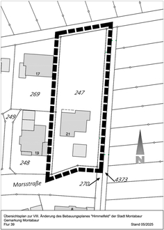 Der Geltungsbereich der Bebauungsplanänderung umfasst ausschließlich das Grundstück in der Gemarkung Montabaur, Flur 39, Flurstück-Nr. 247 (Marsstraße 21). Das betroffene Flurstück ist in beigefügtem Übersichtsplan dick gestrichelt umrandet.