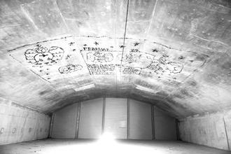 Im ersten und zweiten der kleinen Bunker ist der Sinziger Fotograf Klaus Berg mit seiner Ausstellung „Experimentelle Fotografien“ zu sehen. Seine Bilder beruhen auf dreien der Elemente unseres Daseins: Erde, Feuer und Wasser. Es sind Momentaufnahmen, die in einer sehr kurzen Zeitspanne die Vielfalt von Bewegungsformen festhalten. Strukturen im Sand, fragile Rauchgebilde und faszinierende Tropfen sollen beim Betrachten die visuelle Wahrnehmung sensibilisieren und die Fantasie anregen.