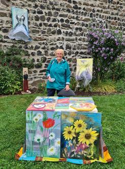 Ein fröhliches und buntes Treiben konnte man auch an den Kunstständen erleben. Künstlerinnen und Künstler aus der Region hatten ihre Pavillons aufgebaut und boten ihre Bilder oder Selbstgefertigtes aus Ton, Holz oder Stoff zum Verkauf an. Die Kunstschaffenden sowie der Förderverein der Kita St.Peter hatten auch für das leibliche Wohl gesorgt. An einem eigens eingerichteten Picknicktisch gab es Gebäck, selbstgebackenes Brot, Getränke sowie Kaffee und Kuchen.