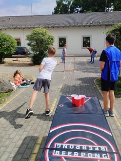 Am 23. August ab 14 Uhr haben wir unseren ersten Outdoorspieletreff durchgeführt. Damit waren wir laut Roman Blaser, dem Mitarbeiter des Hauses der Jugend Montabaur, die erste Ortsgemeinde, die so eine Veranstaltung gemacht hat. Die Koordination des Termins mit Roman Blaser war einfach. Insgesamt 17 Kinder und Jugendliche folgten dem Aufruf. Von Wikingerschach (Kubb), über Wasser Pong, Schach, Vier Gewinnt, Stelzen, Geschicklichkeitswurfspiel bis Basketball und Fußball wurde ein abwechslungsreiches Angebot zur Verfügung gestellt. Ab 16 Uhr kam dann auch die Sonne vorbei.