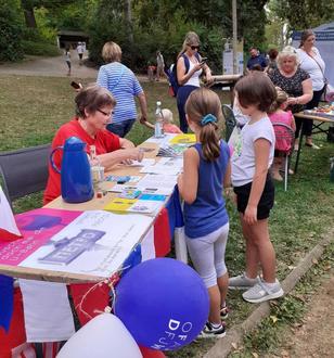 Auch am Stand der Deutsch-Französischen Gesellschaft konnten sie sich einen Stempel für Ihre Teilnahmekarte abholen, wenn die Größeren den Namen der französischen Partnerstadt von Montabaur - den sie auch dem auf dem Tisch ausgelegten Informationsmaterial entnehmen konnten - und die Kleineren ein Croissant benennen konnten.